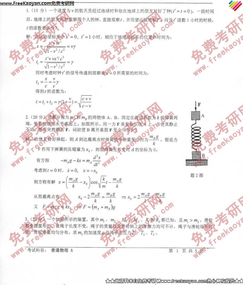 相关话题/考研真题 技术 科技 普通物理 答案
