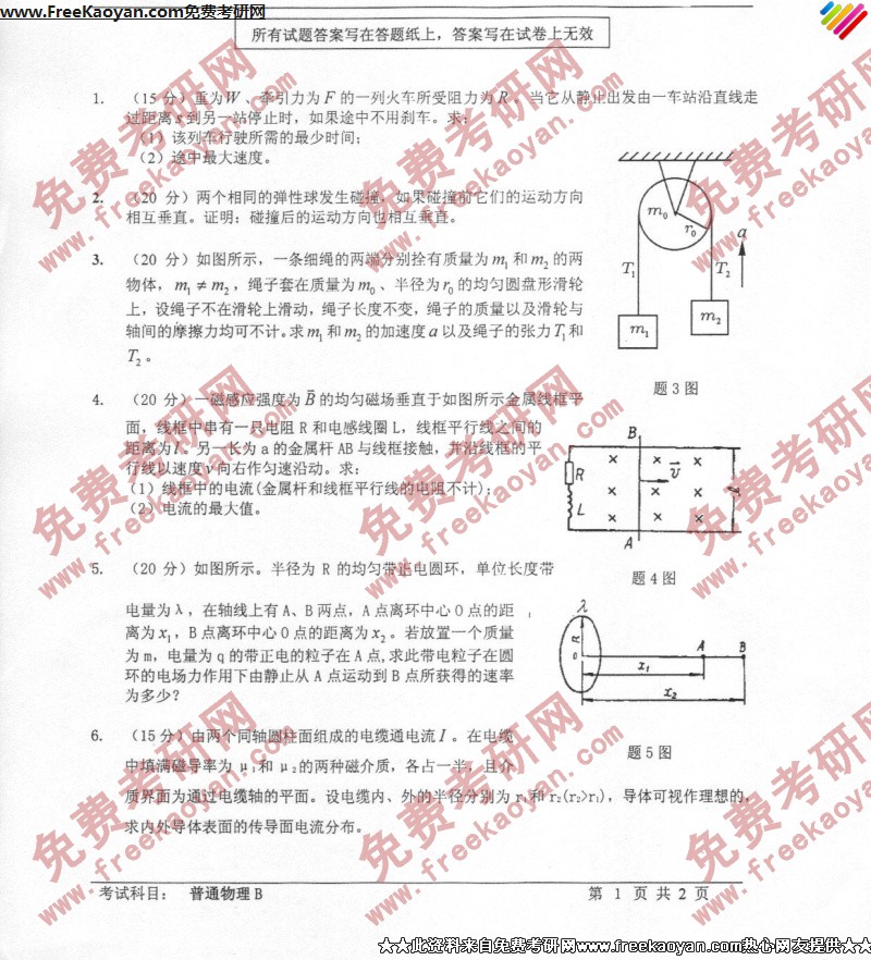 专业课考研经验 本站小编 FreeKaoyan 2018-01-23中国科技技术大学2007年考研真题-普通物理A及答案