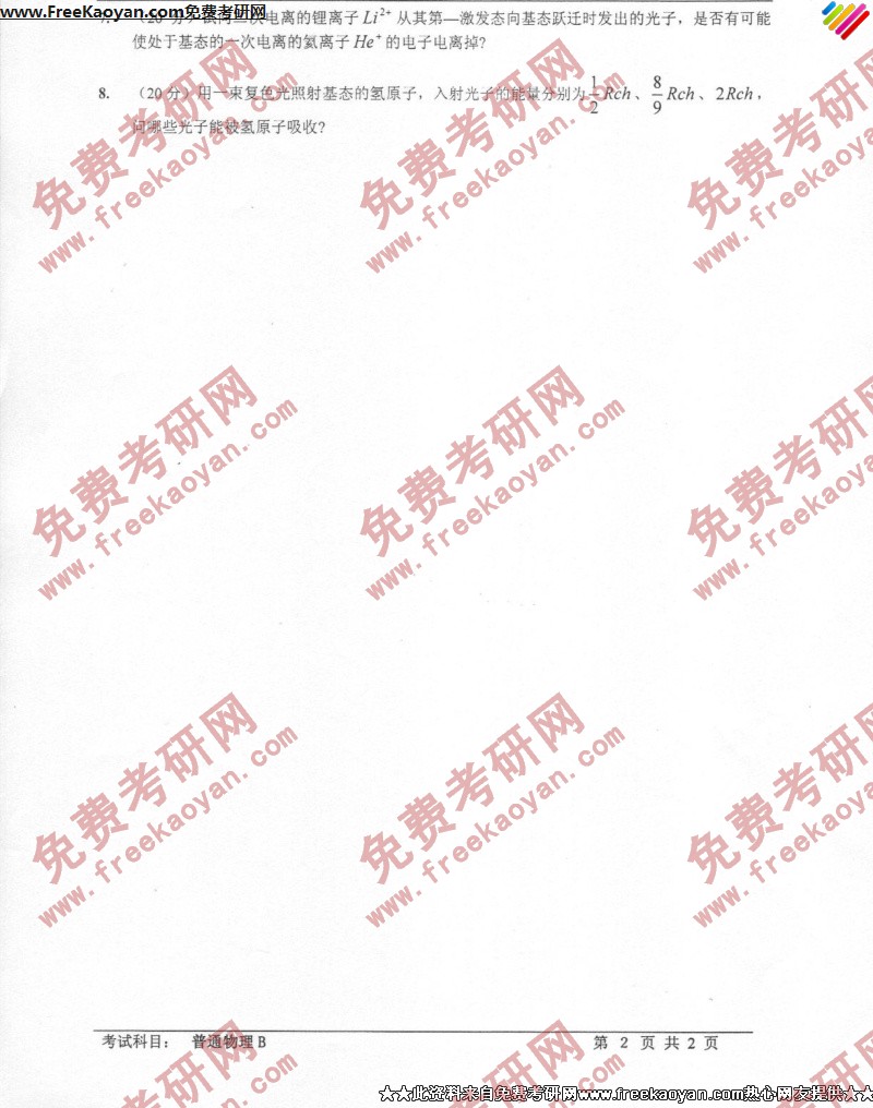 专业课考研经验 本站小编 FreeKaoyan 2018-01-23中国科技技术大学2007年考研真题-普通物理A及答案