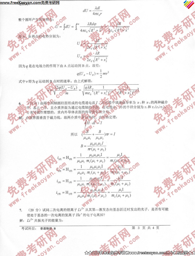 专业课考研经验 本站小编 FreeKaoyan 2018-01-23中国科技技术大学2007年考研真题-普通物理A及答案