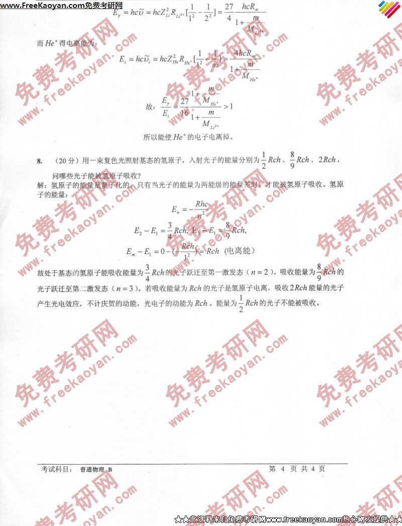 专业课考研经验 本站小编 FreeKaoyan 2018-01-23中国科技技术大学2007年考研真题-普通物理A及答案