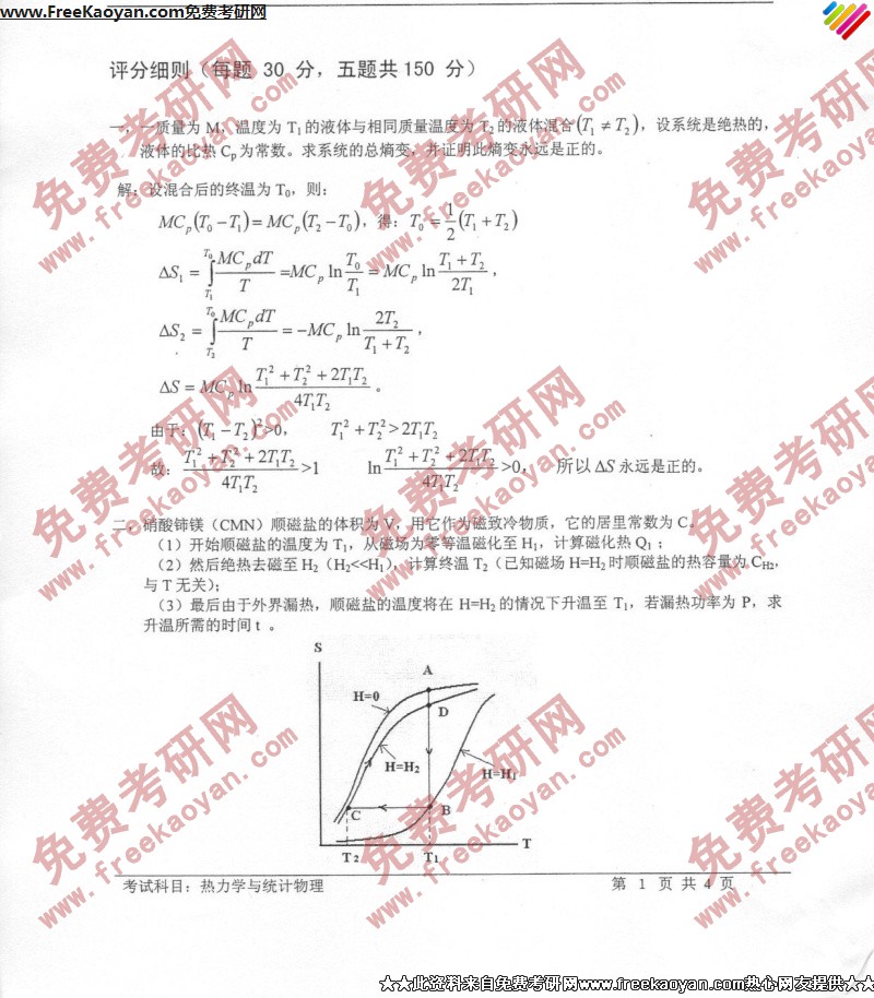 中国科技技术大学2007年考研真题-热力学与统计物理及答案(2)