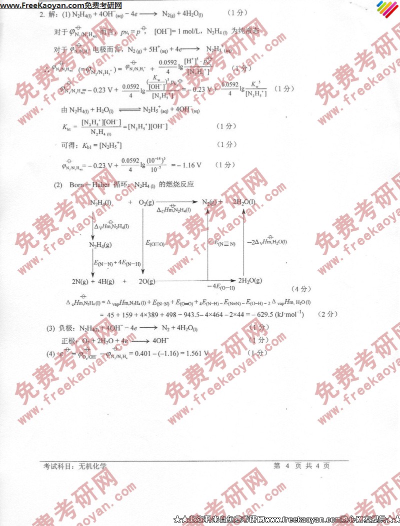 相关话题/考研真题 技术 科技 无机化学 答案