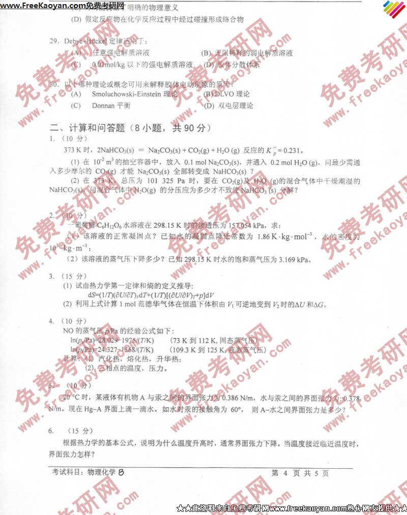 相关话题/考研真题 技术 科技 物理化学 答案