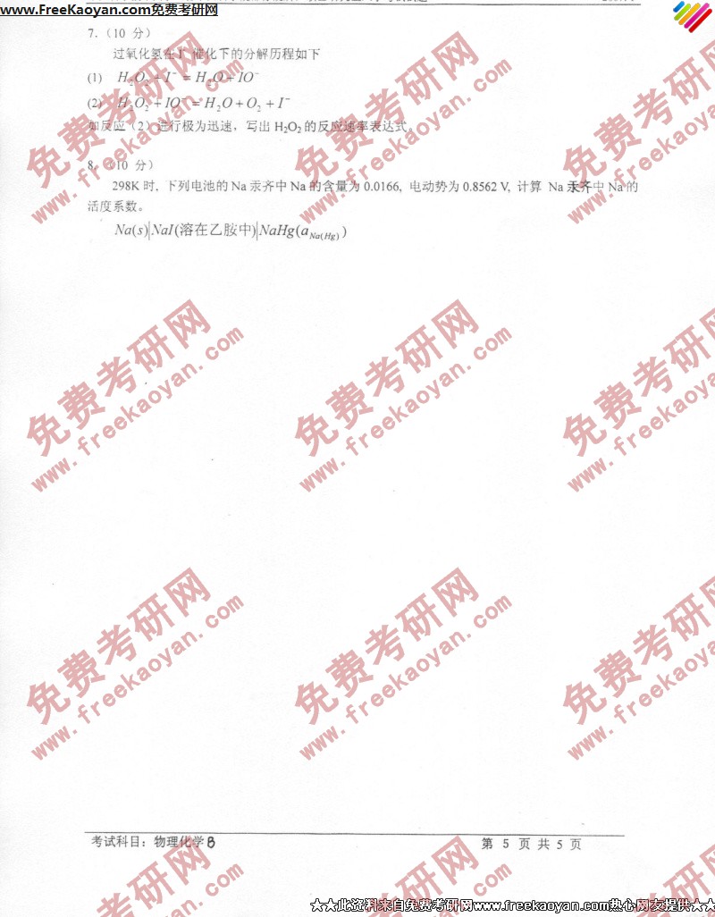 中国科技技术大学2007年考研真题-物理化学B及答案(5)
