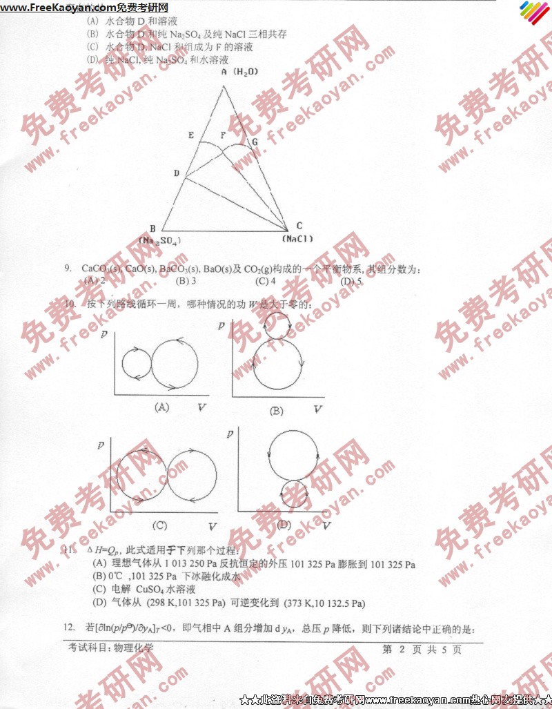 专业课考研经验 本站小编 FreeKaoyan 2018-01-23中国科技技术大学2007年考研真题-物理化学B及答案