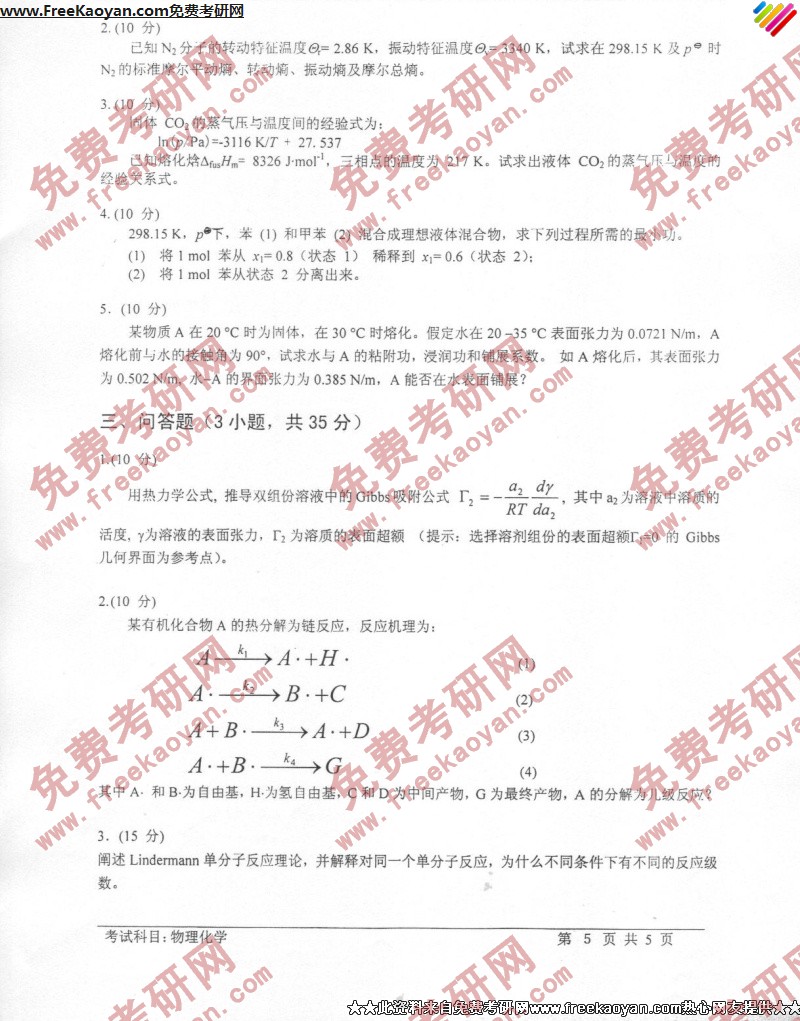 专业课考研经验 本站小编 FreeKaoyan 2018-01-23中国科技技术大学2007年考研真题-物理化学B及答案