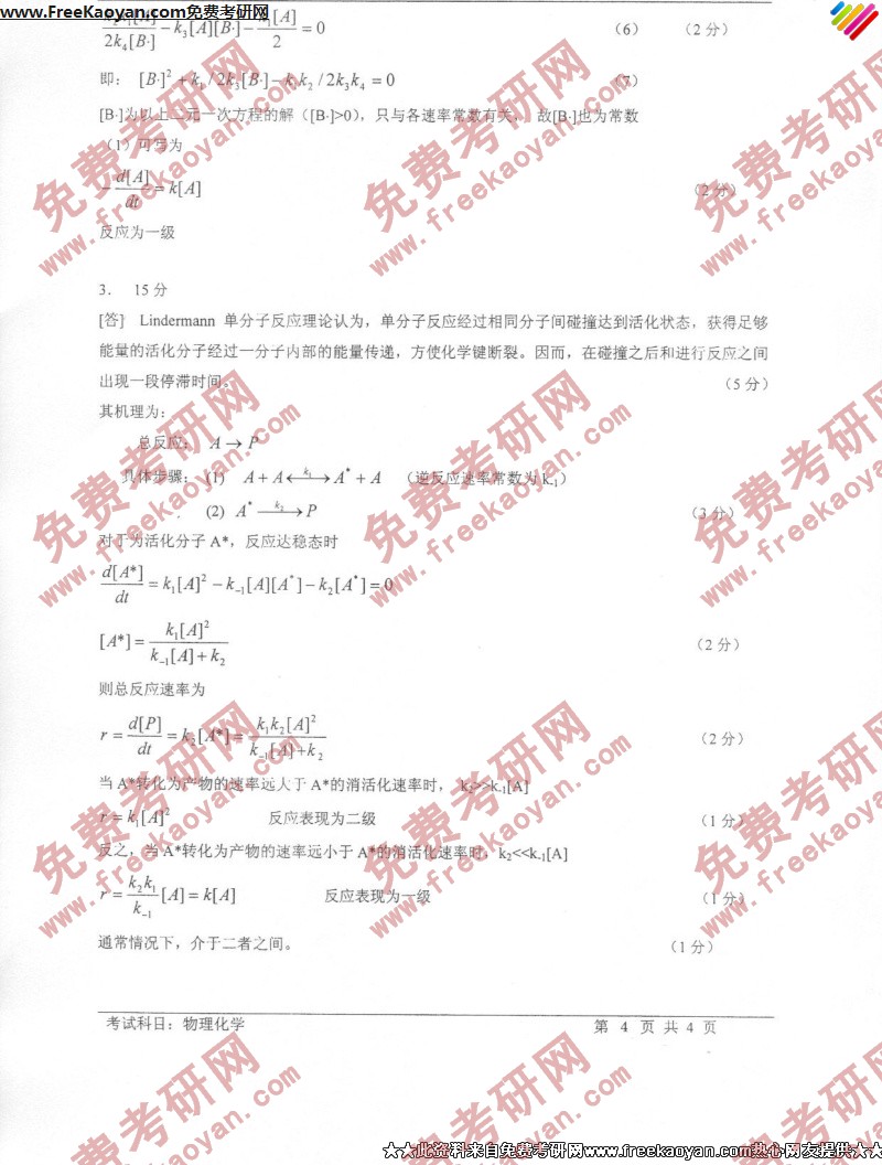 专业课考研经验 本站小编 FreeKaoyan 2018-01-23中国科技技术大学2007年考研真题-物理化学B及答案