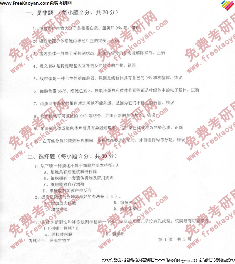 相关话题/考研真题 技术 科技 细胞生物学 答案