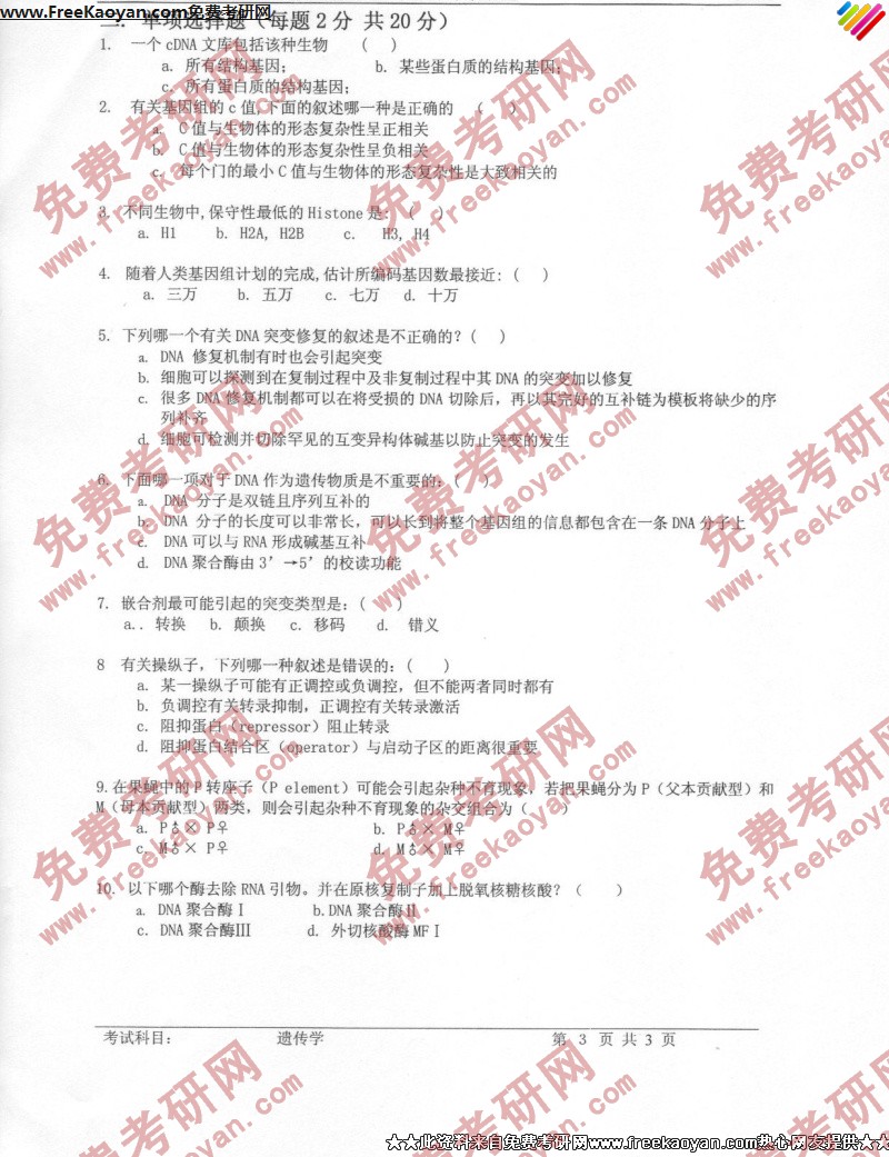中国科技技术大学2007年考研真题-遗传学及答案(3)