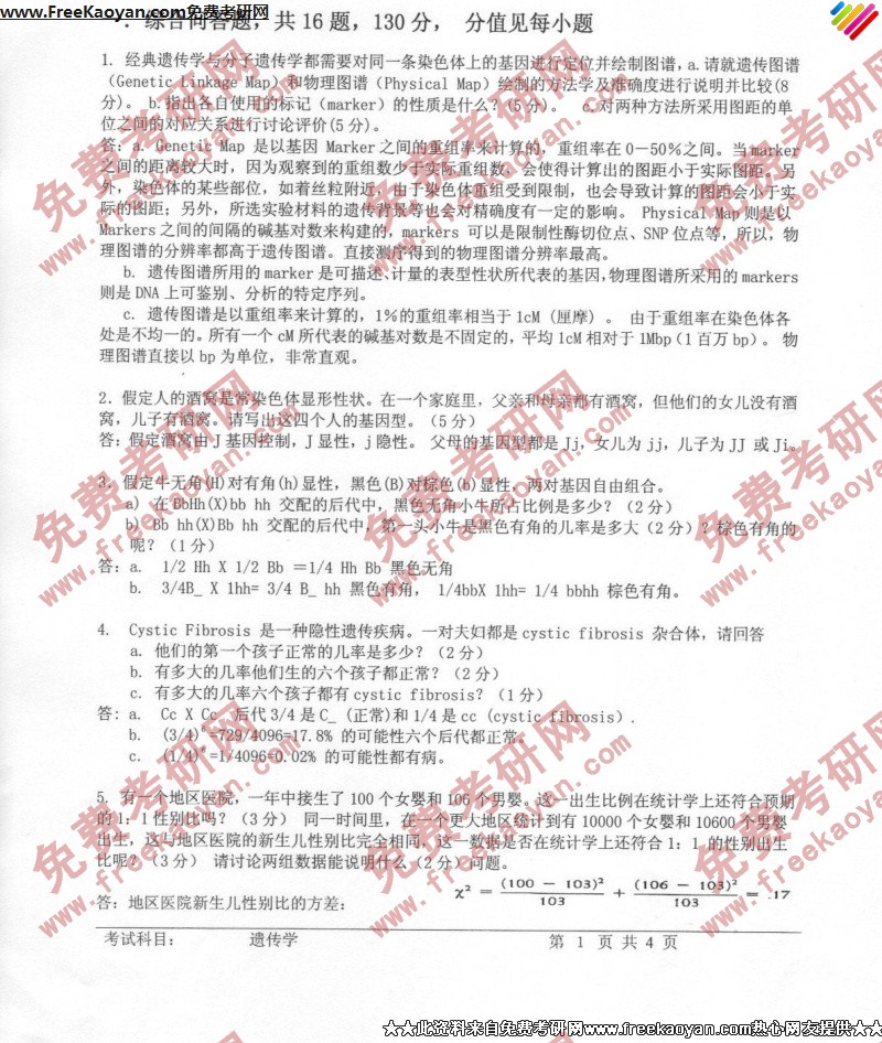 中国科技技术大学2007年考研真题-遗传学及答案(4)
