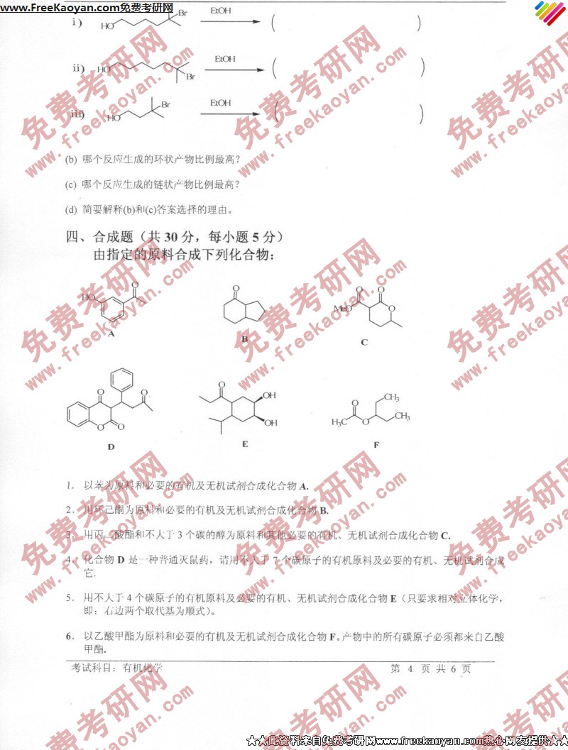 相关话题/考研真题 技术 科技 有机化学 答案