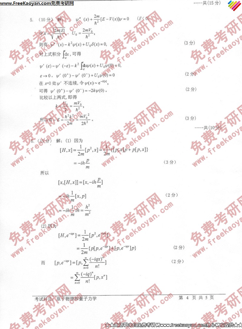 中国科技技术大学2007年考研真题-原子物理和量子力学及答案(8)