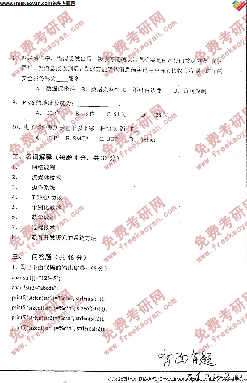 西安交通大学2005年考研真题-教育技术学导论(2)