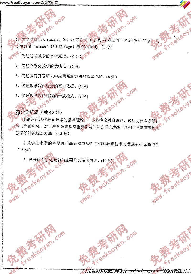 西安交通大学2005年考研真题-教育技术学导论(3)