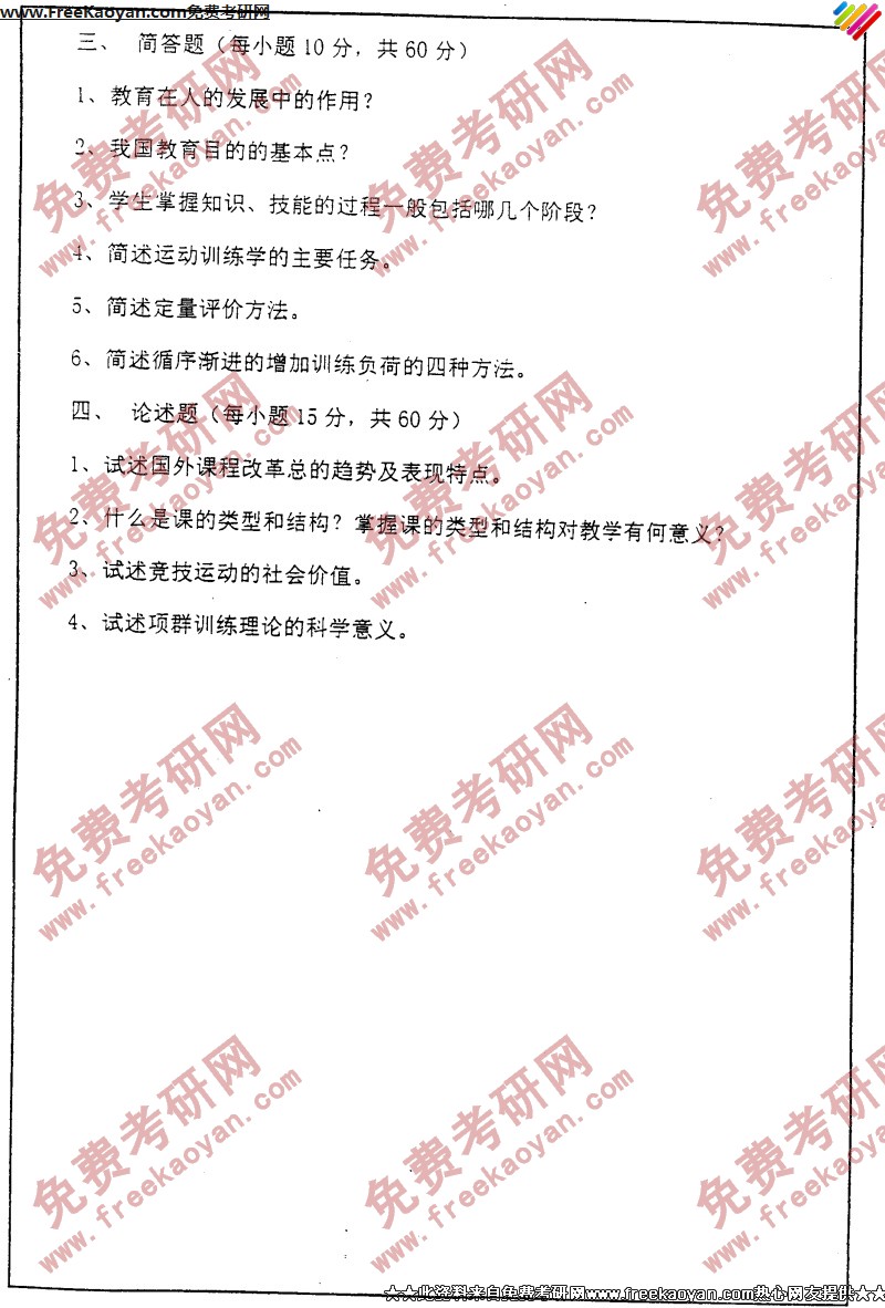 西安交通大学2005年考研真题-教育学与运动训练学(2)