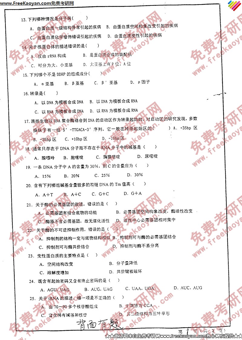 相关话题/西安交通大学 考研真题 生物化学与分子生物学