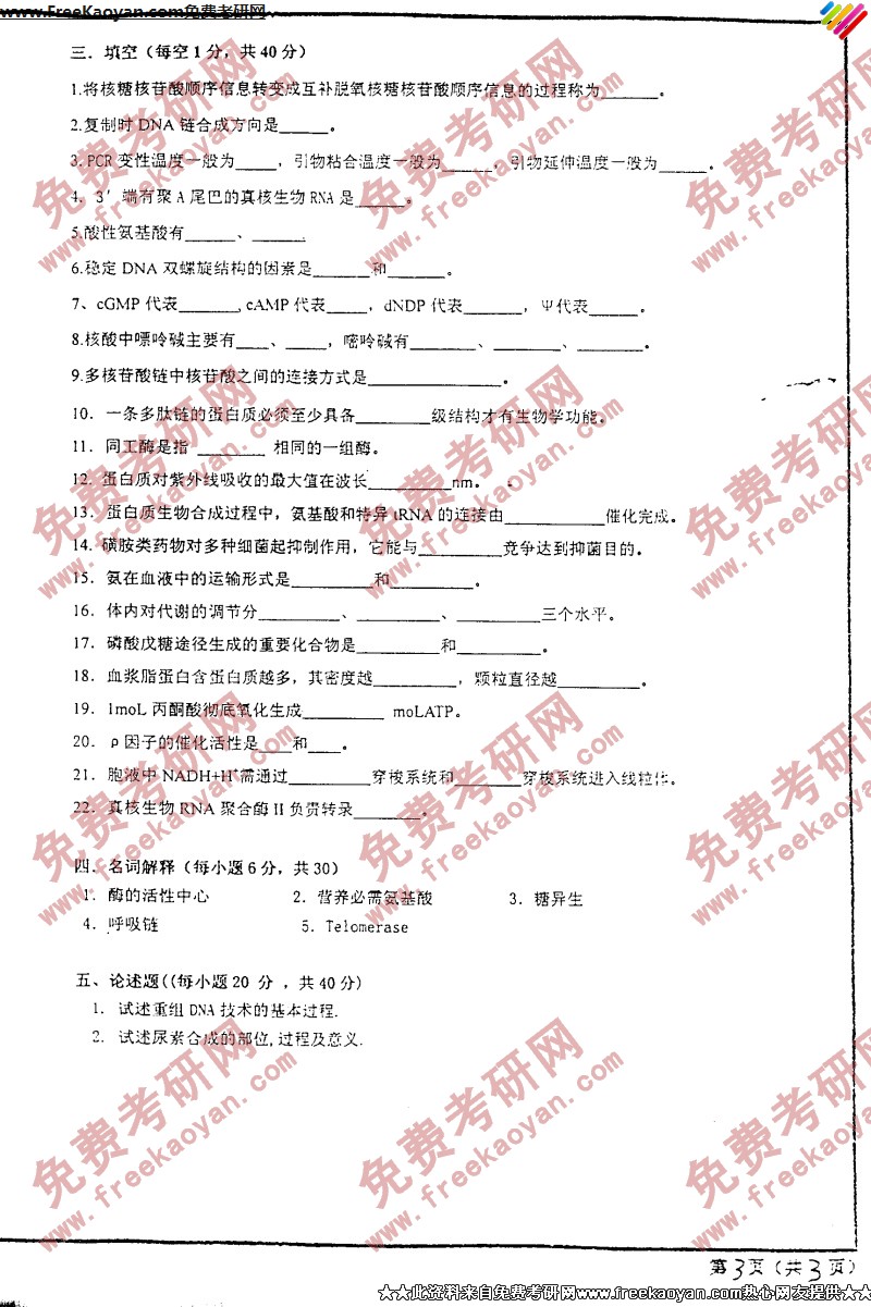 相关话题/西安交通大学 考研真题 生物化学与分子生物学