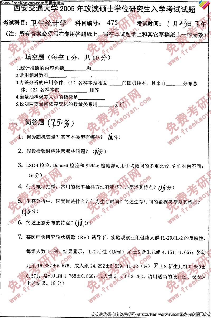 专业课考研经验 本站小编 FreeKaoyan 2018-01-23西安交通大学2005年考研真题-流行病学