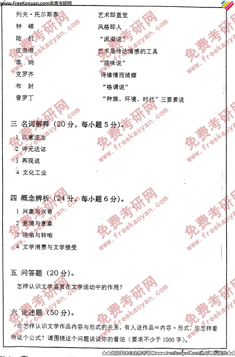 相关话题/考研真题 文学 西安交通大学 概论