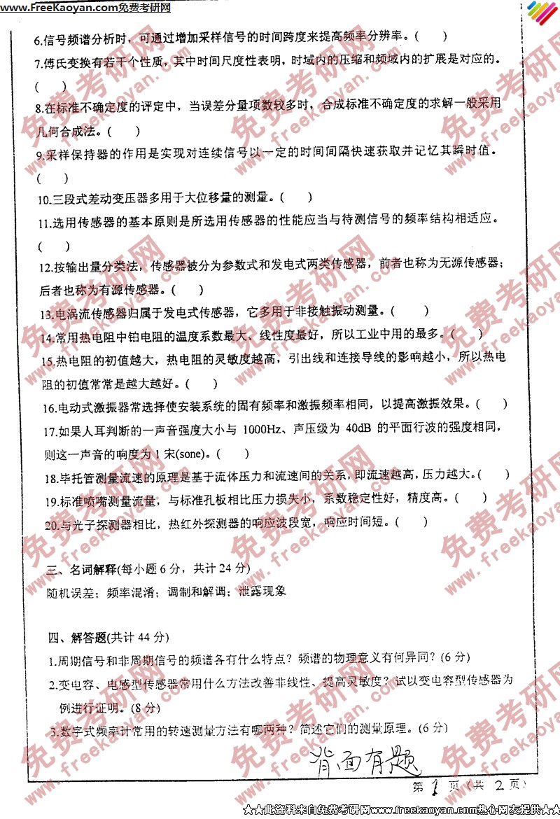 西安交通大学2005年考研真题-现代测试技术(2)