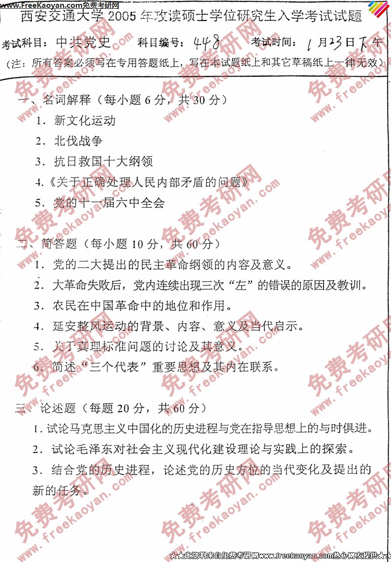 相关话题/西安交通大学 考研真题 中共党史