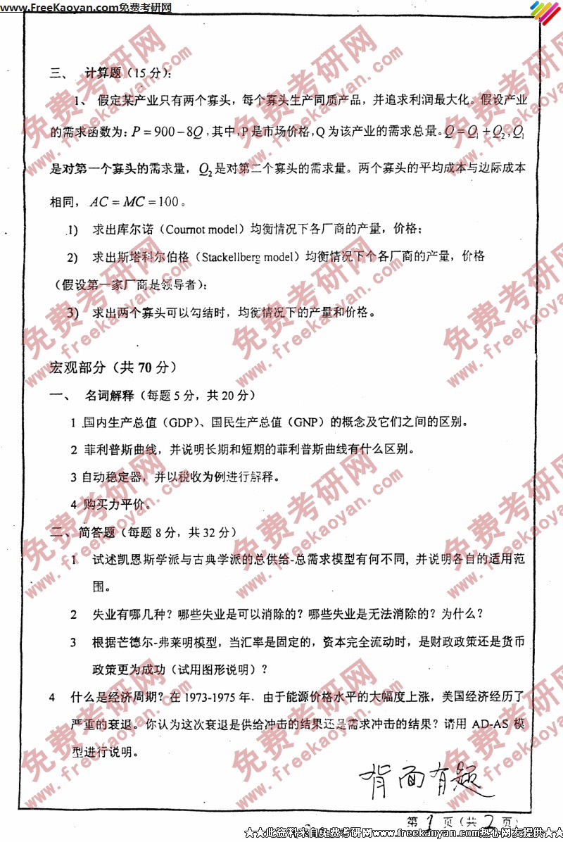 西安交通大学2005年考研真题-中级宏观微观经济学(2)