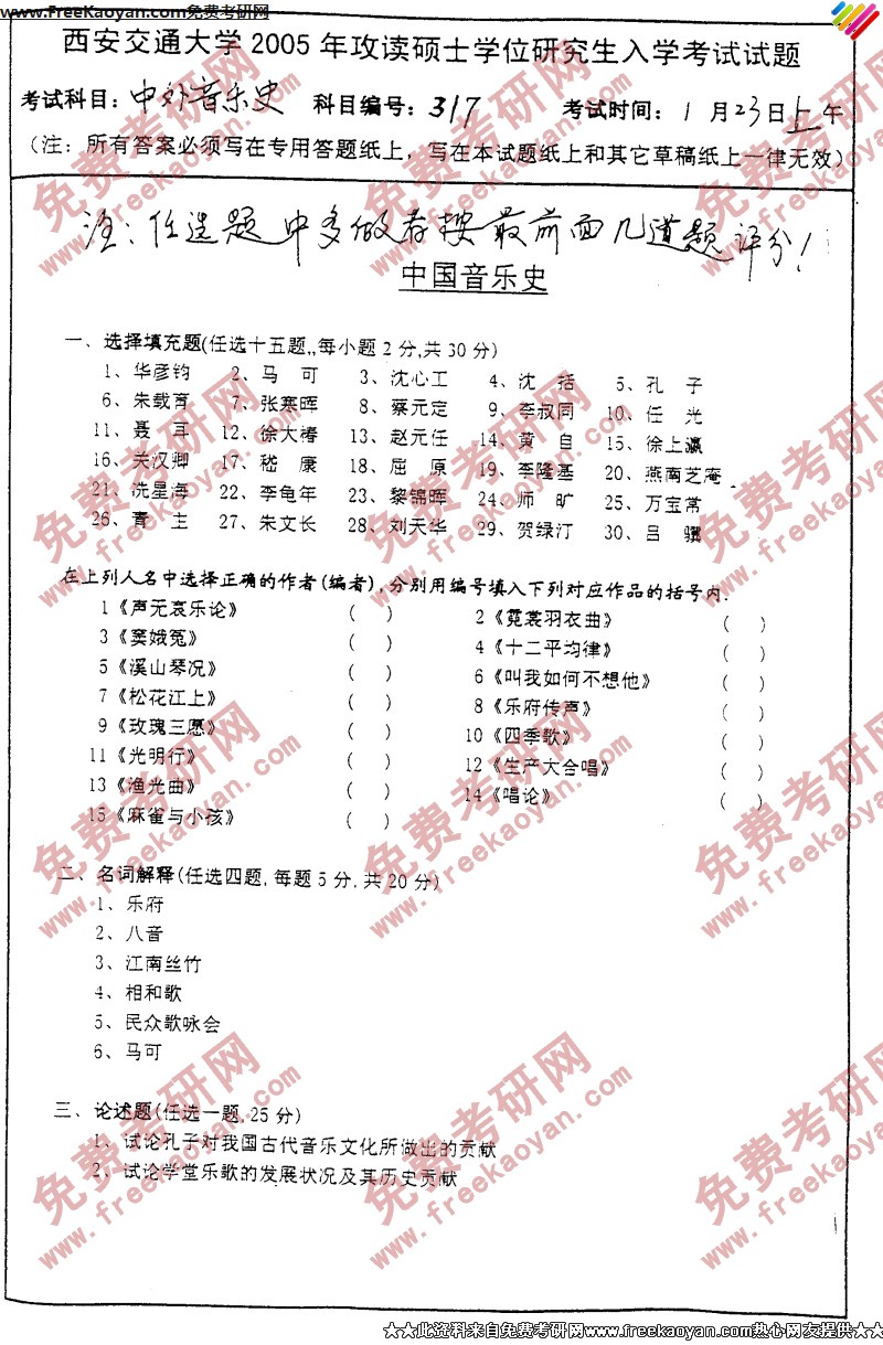 相关话题/考研真题 西安交通大学 音乐史 中外