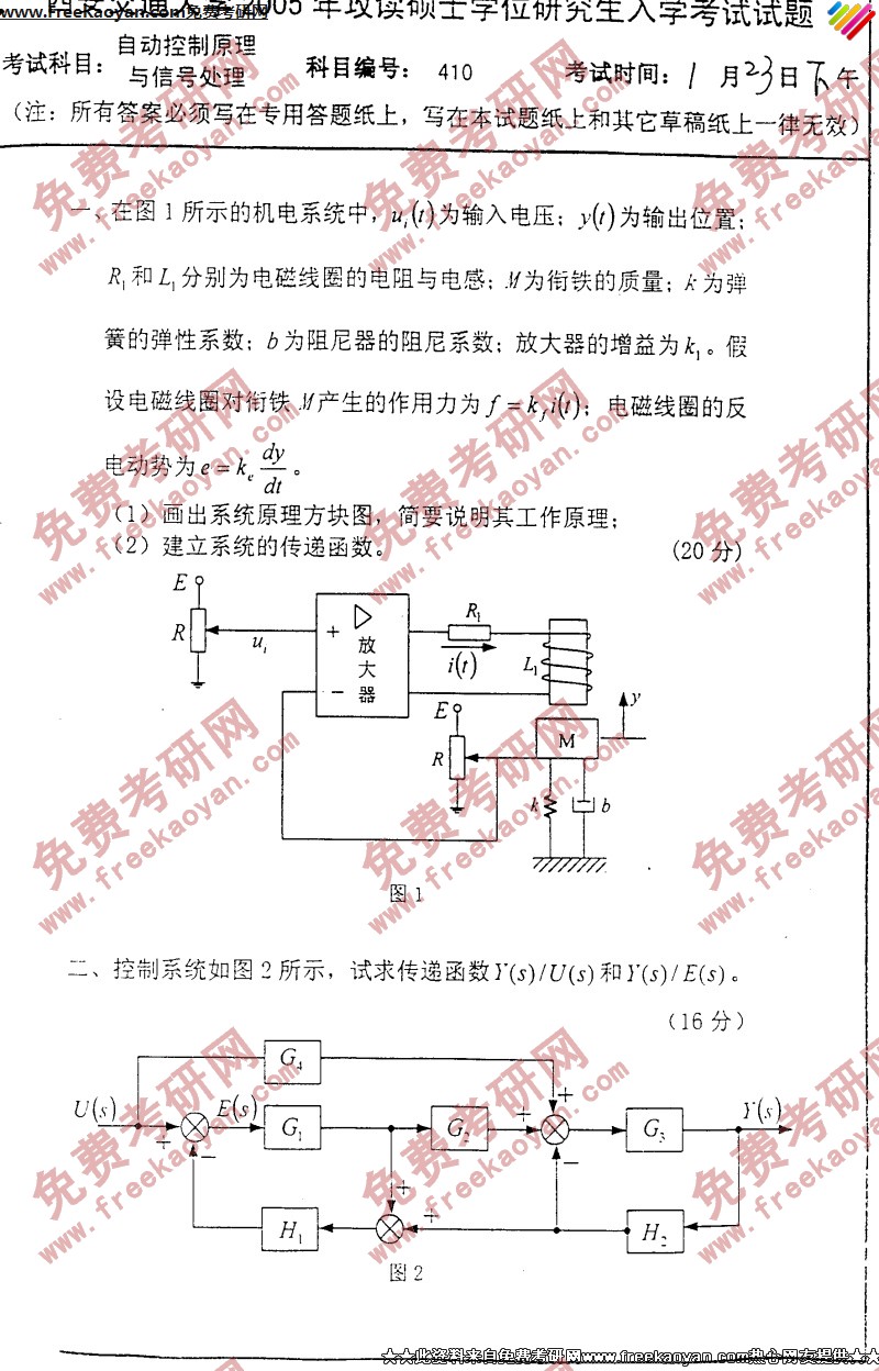西安交通大学2005年考研真题-自动控制原理与信号处理