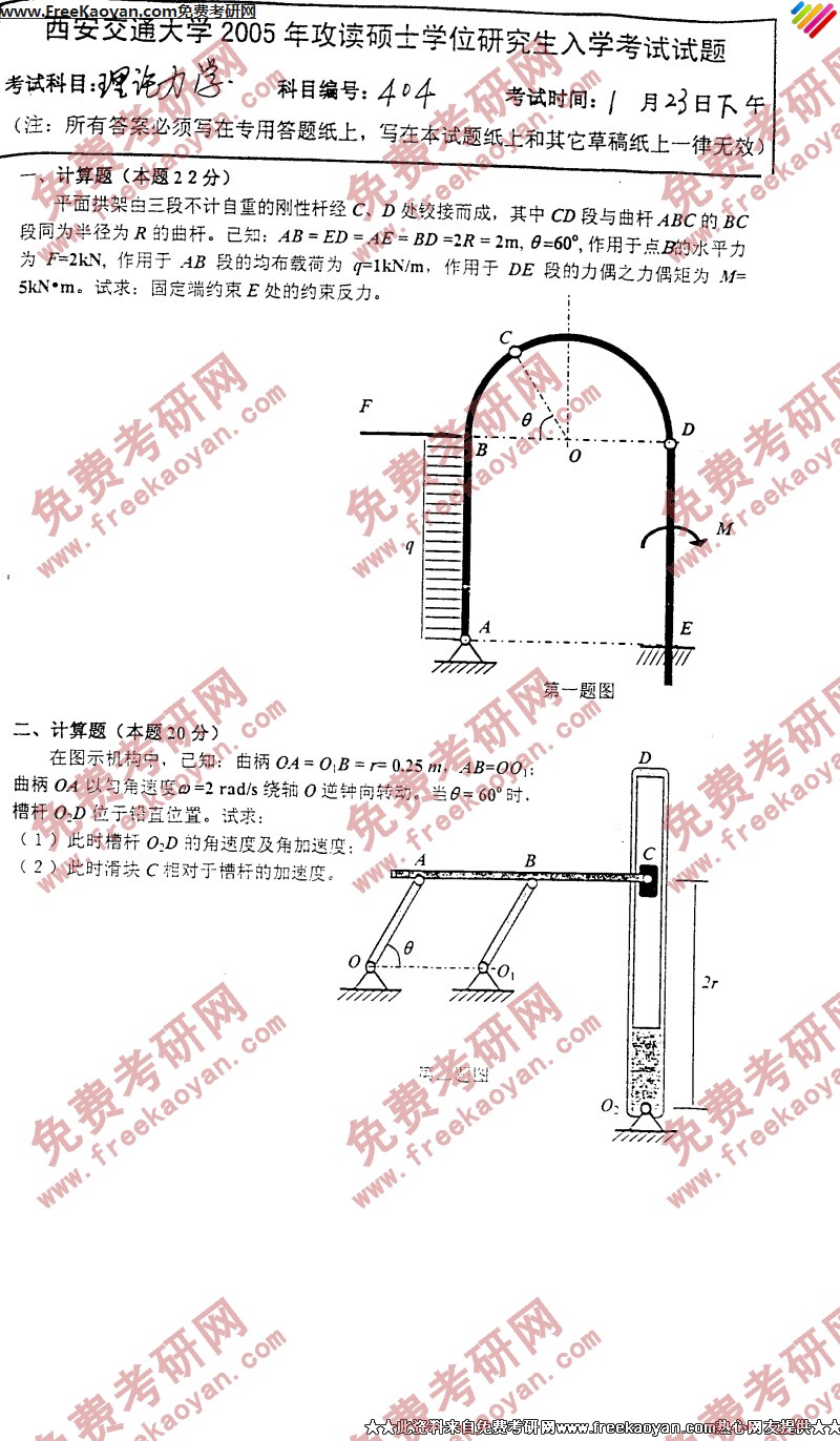 西安交通大学2005年考研真题-理论力学