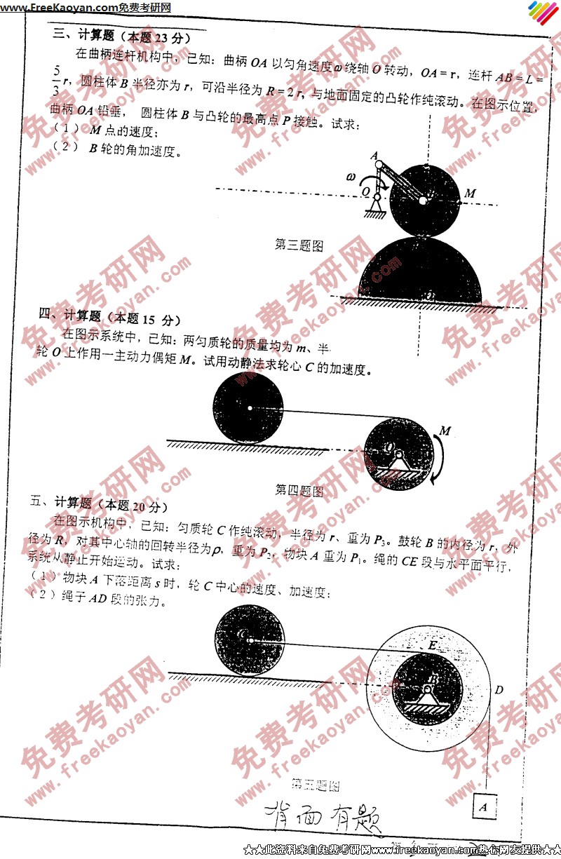 西安交通大学2005年考研真题-理论力学(2)