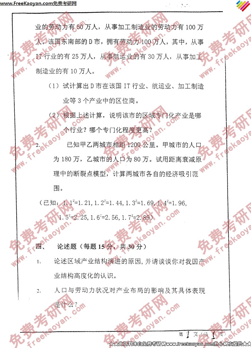 相关话题/考研真题 西安交通大学 区域经济学 地理 经济
