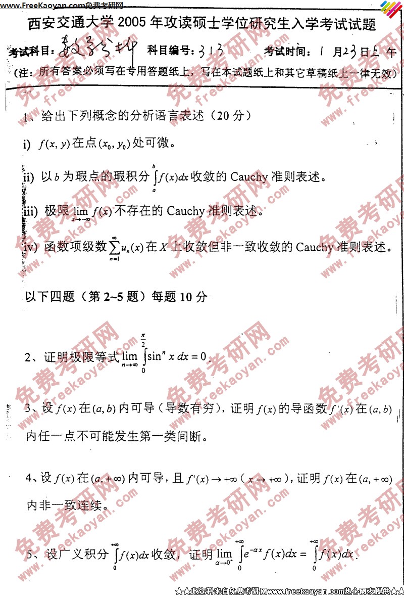 专业课考研经验 本站小编 FreeKaoyan 2018-01-23西安交通大学2005年考研真题-中国文学史