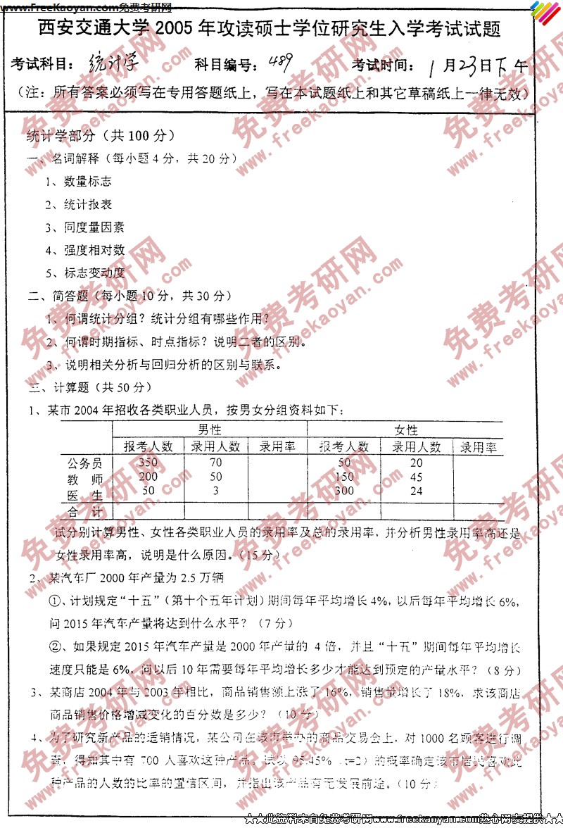 专业课考研经验 本站小编 FreeKaoyan 2018-01-23西安交通大学2005年考研真题-中国文学史