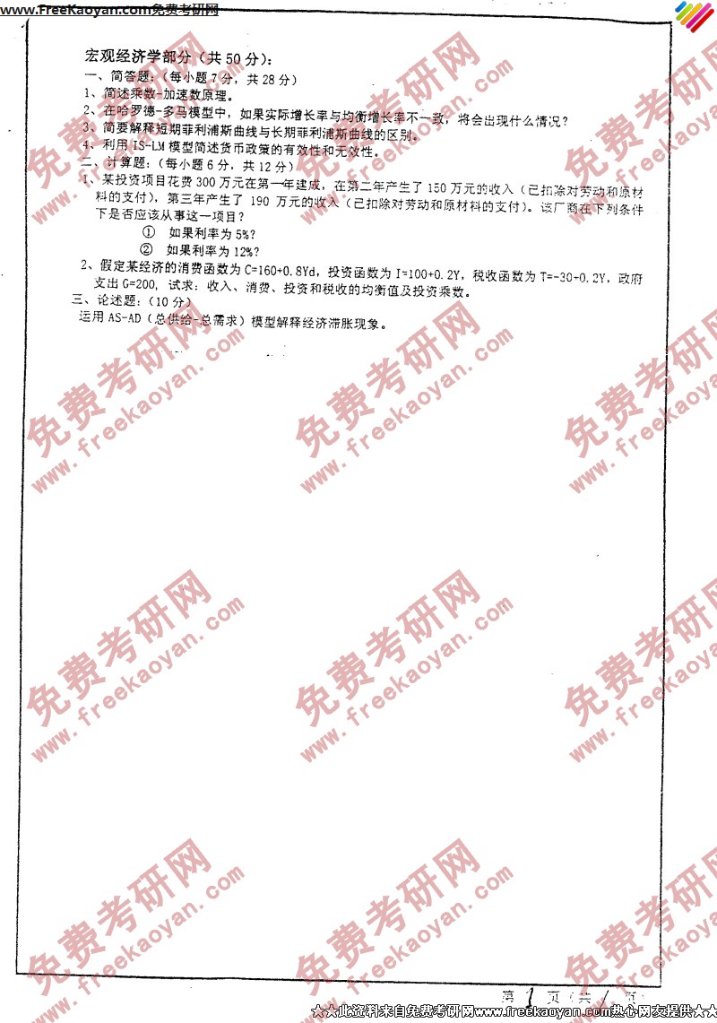 专业课考研经验 本站小编 FreeKaoyan 2018-01-23西安交通大学2005年考研真题-发展经济学