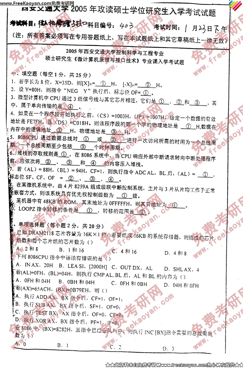 相关话题/考研真题 微机原理 西安交通大学 接口