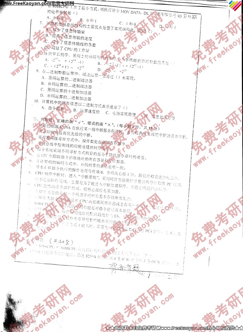 西安交通大学2005年考研真题-微机原理与接口(2)