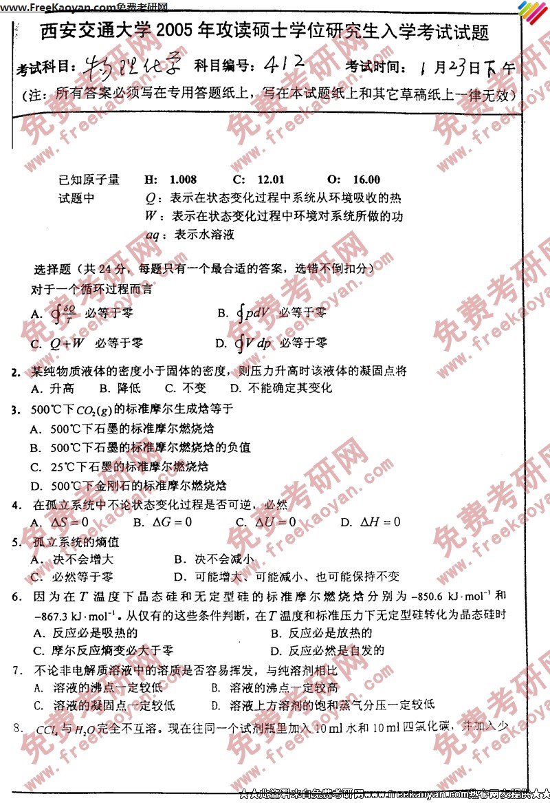 专业课考研经验 本站小编 FreeKaoyan 2018-01-23西安交通大学2005年考研真题-材料科学基础