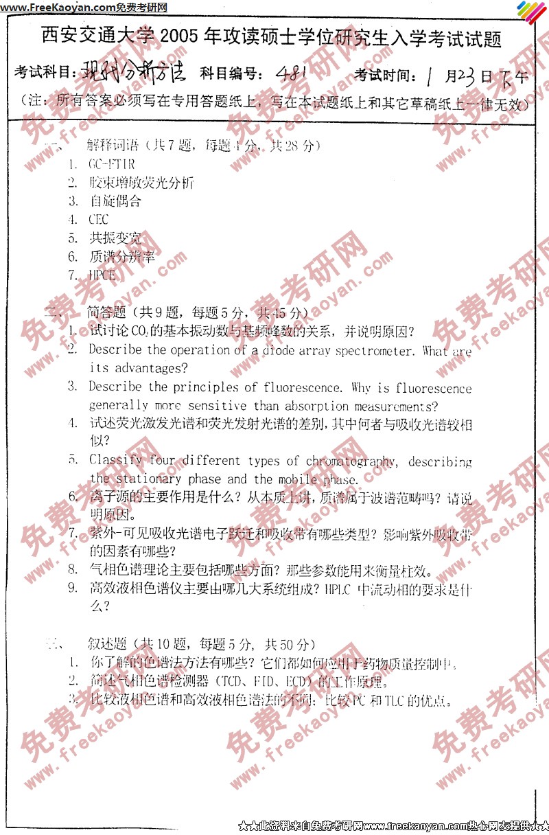 专业课考研经验 本站小编 FreeKaoyan 2018-01-23西安交通大学2005年考研真题-快题设计