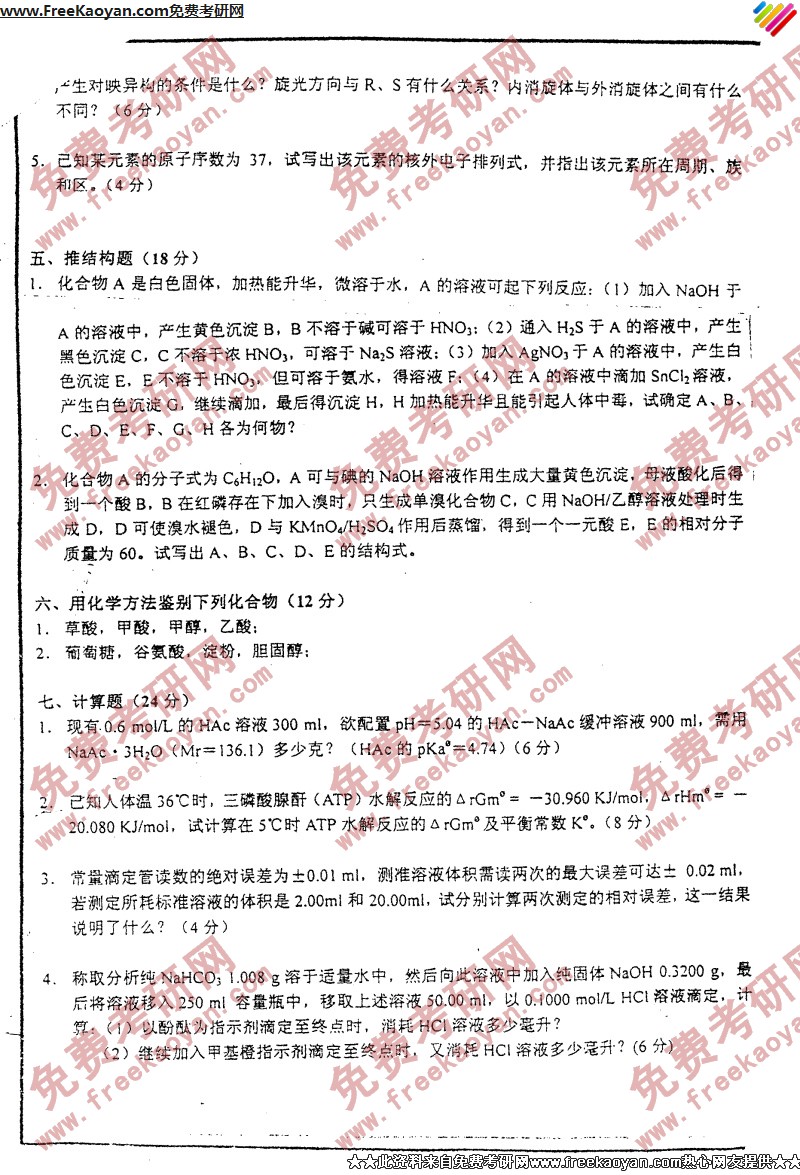 专业课考研经验 本站小编 FreeKaoyan 2018-01-23西安交通大学2005年考研真题-物理化学