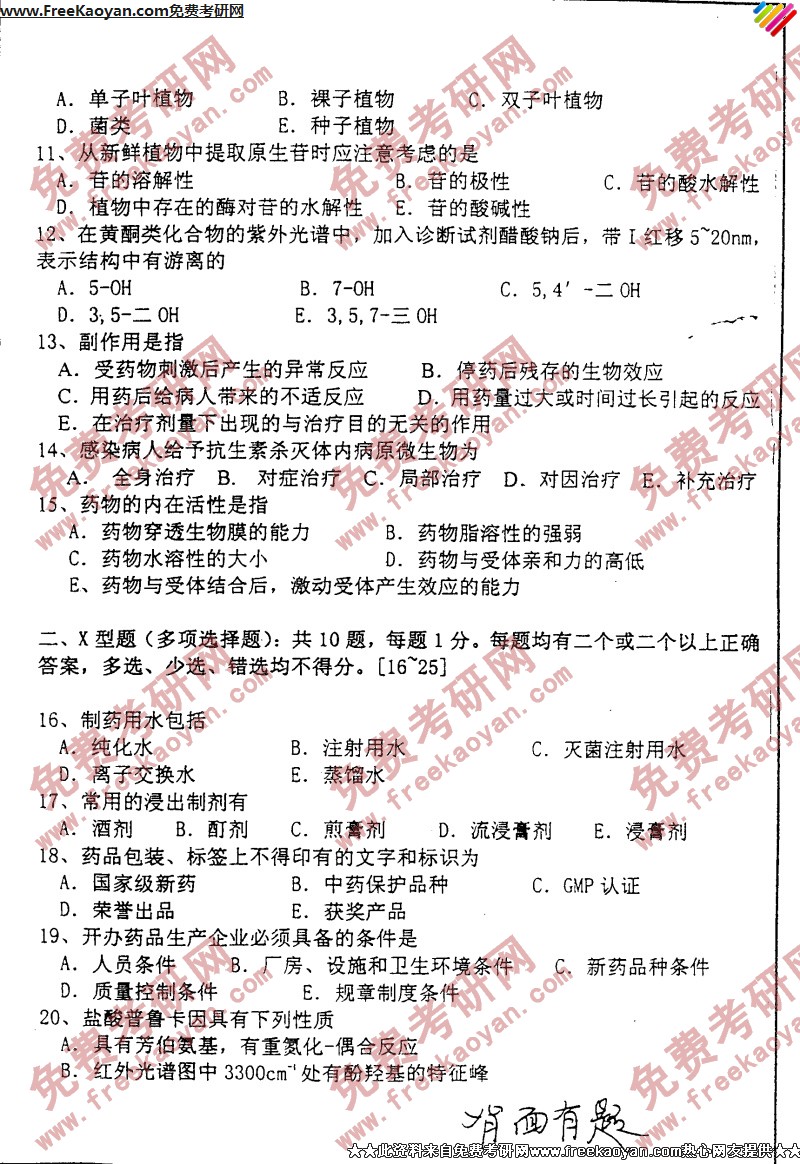 专业课考研经验 本站小编 FreeKaoyan 2018-01-23西安交通大学2005年考研真题-药学综合(二)