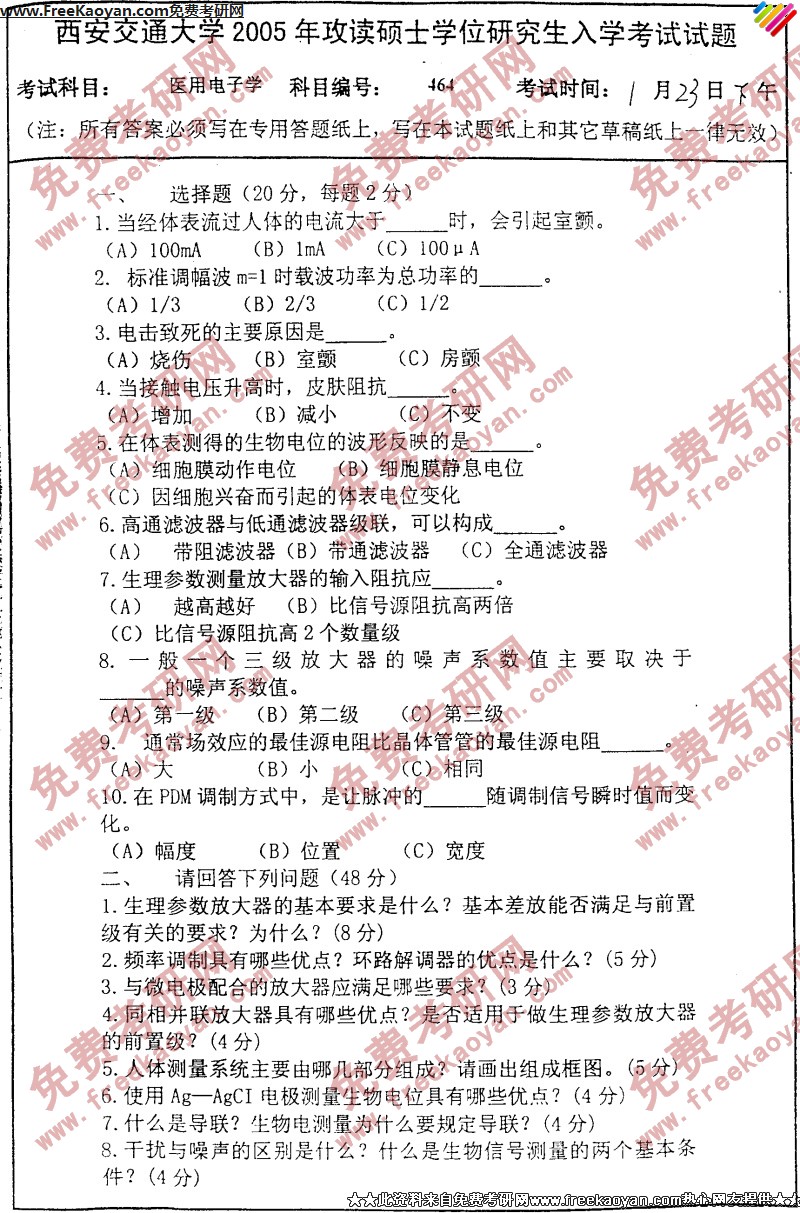 专业课考研经验 本站小编 FreeKaoyan 2018-01-23西安交通大学2005年考研真题-电子技术基础