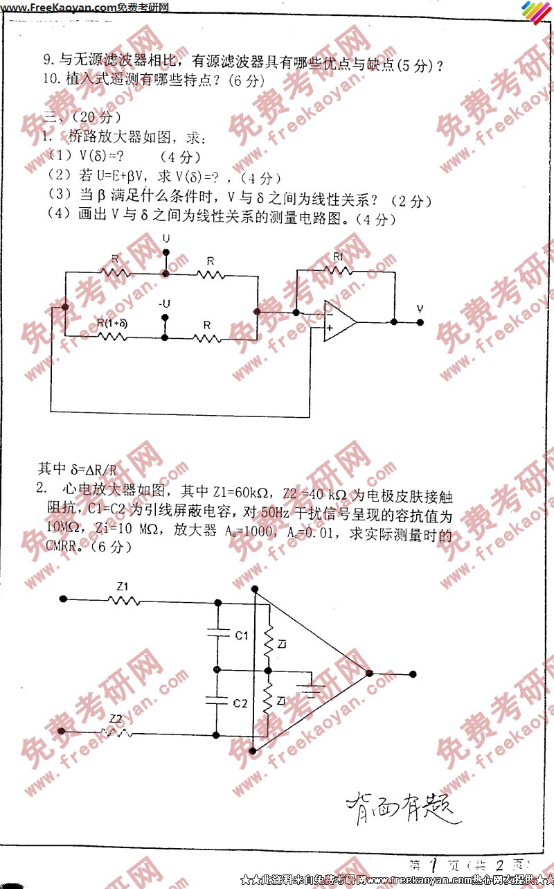 专业课考研经验 本站小编 FreeKaoyan 2018-01-23西安交通大学2005年考研真题-电子技术基础
