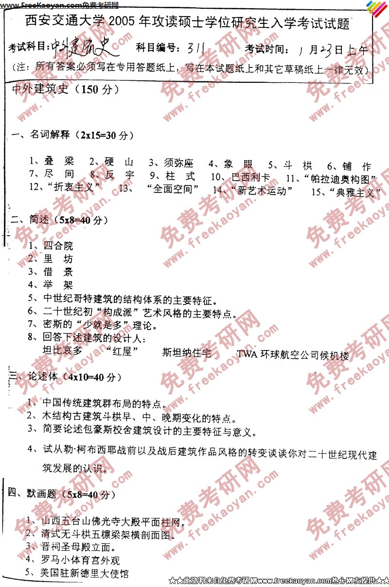专业课考研经验 本站小编 FreeKaoyan 2018-01-23西安交通大学2005年考研真题-快题设计