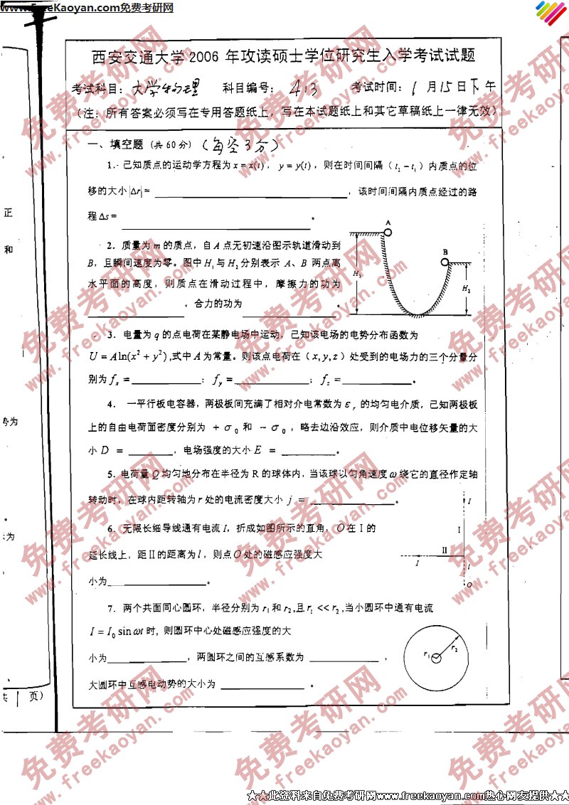 西安交通大学2006年考研真题-大学物理