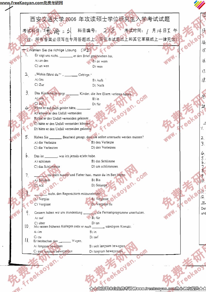 专业课考研经验 本站小编 FreeKaoyan 2018-01-23西安交通大学2005年考研真题-快题设计