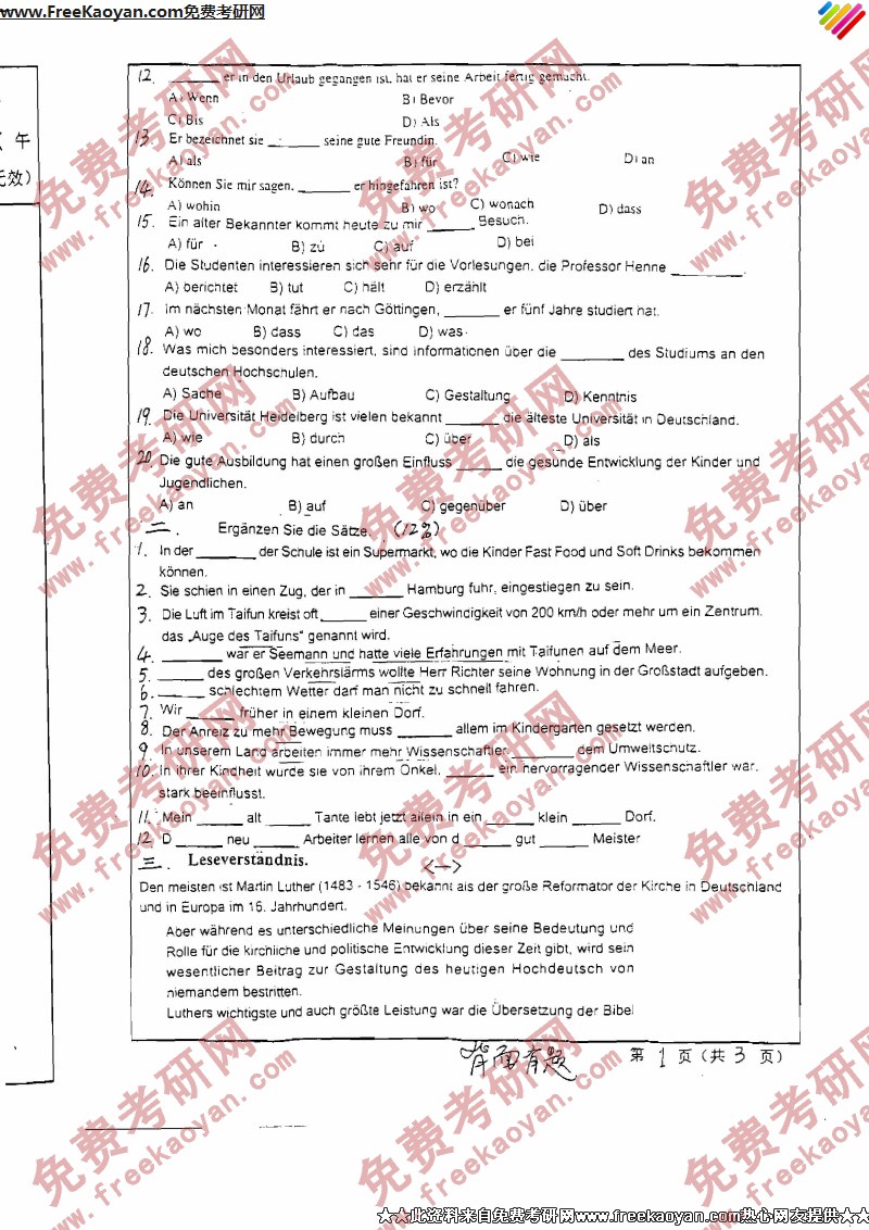 相关话题/西安交通大学 考研真题 德语