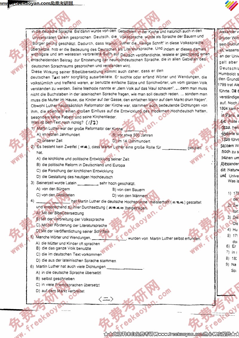 西安交通大学2006年考研真题-二外德语(3)