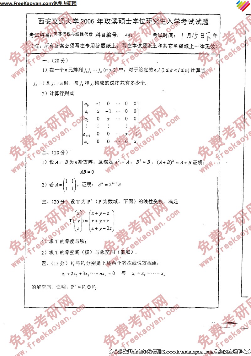 相关话题/考研真题 西安交通大学 线性代数 高等代数