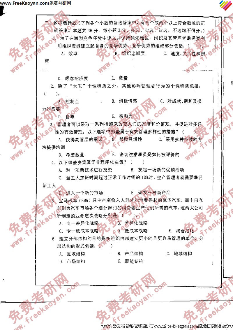 西安交通大学2006年考研真题-管理学基础(3)